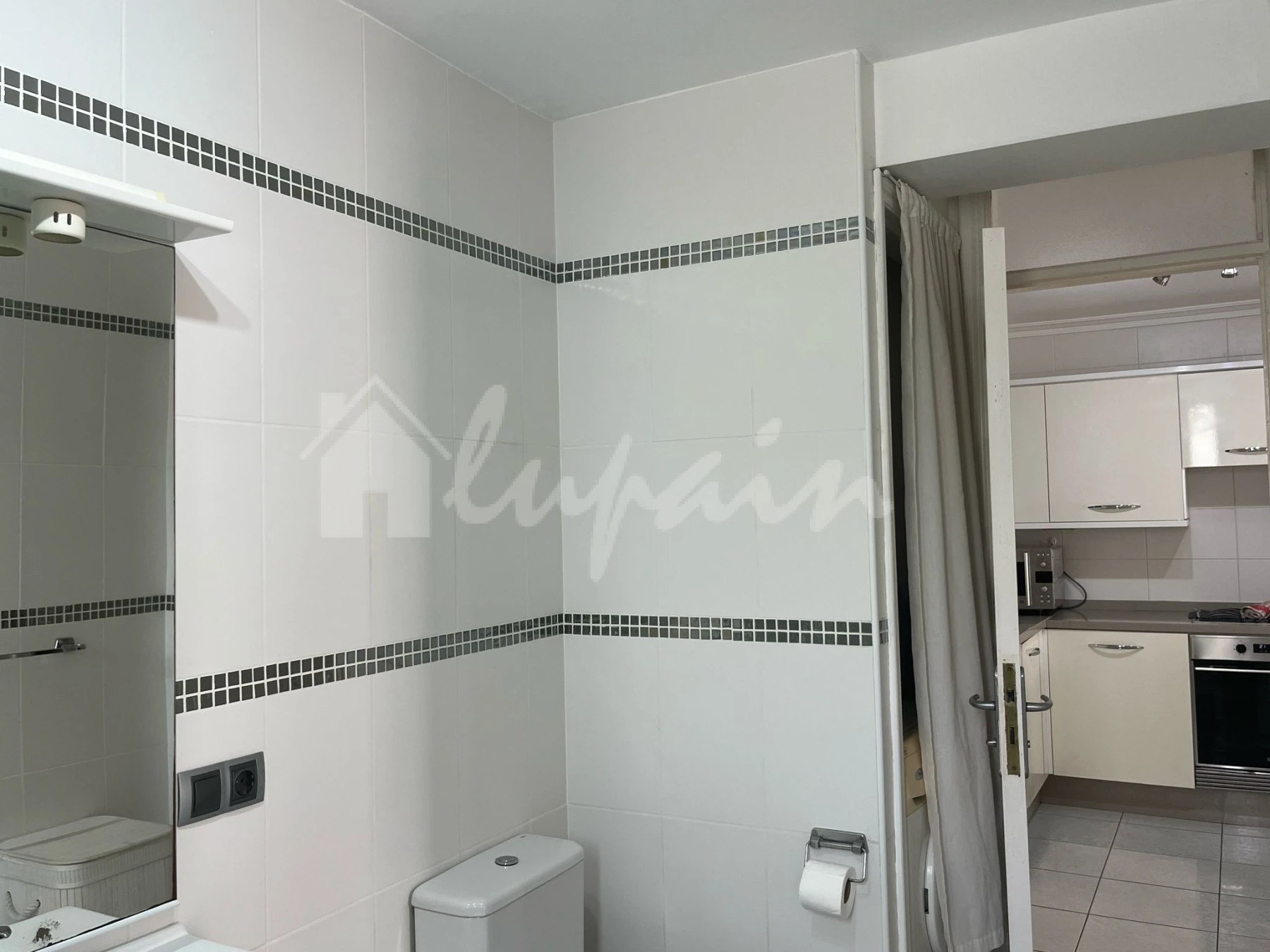 The apartment features one spacious bedroom with fitted wardrobes, which could easily be converted into a two-bedroom layout, along with a well-appointed bathroom. The open-plan American-style kitchen is fully fitted and equipped, seamlessly connecting to the bright lounge and dining area. Patio doors open onto a generous terrace offering pleasant street views, perfect for relaxing or entertaining. The property is being sold fully furnished.