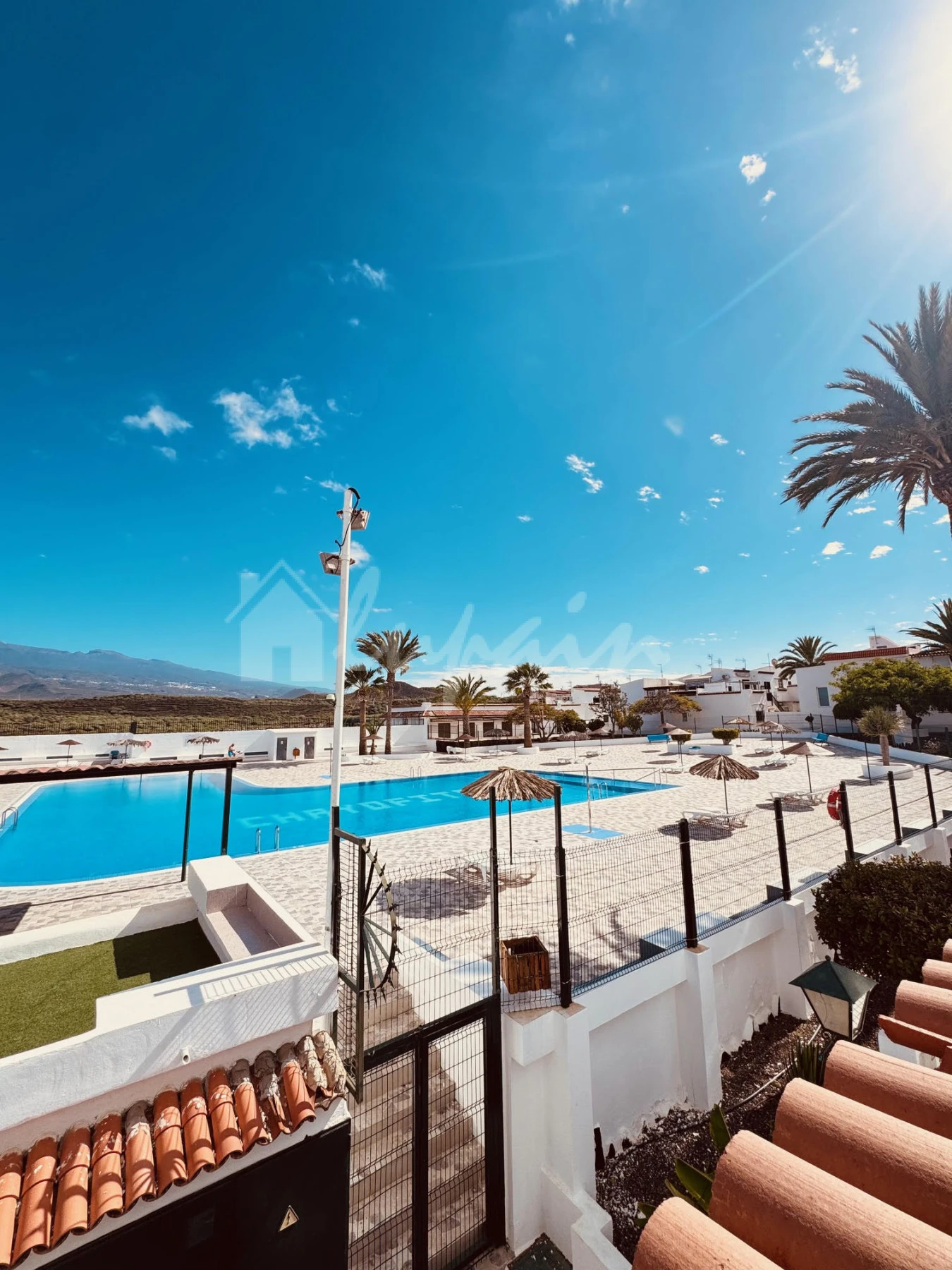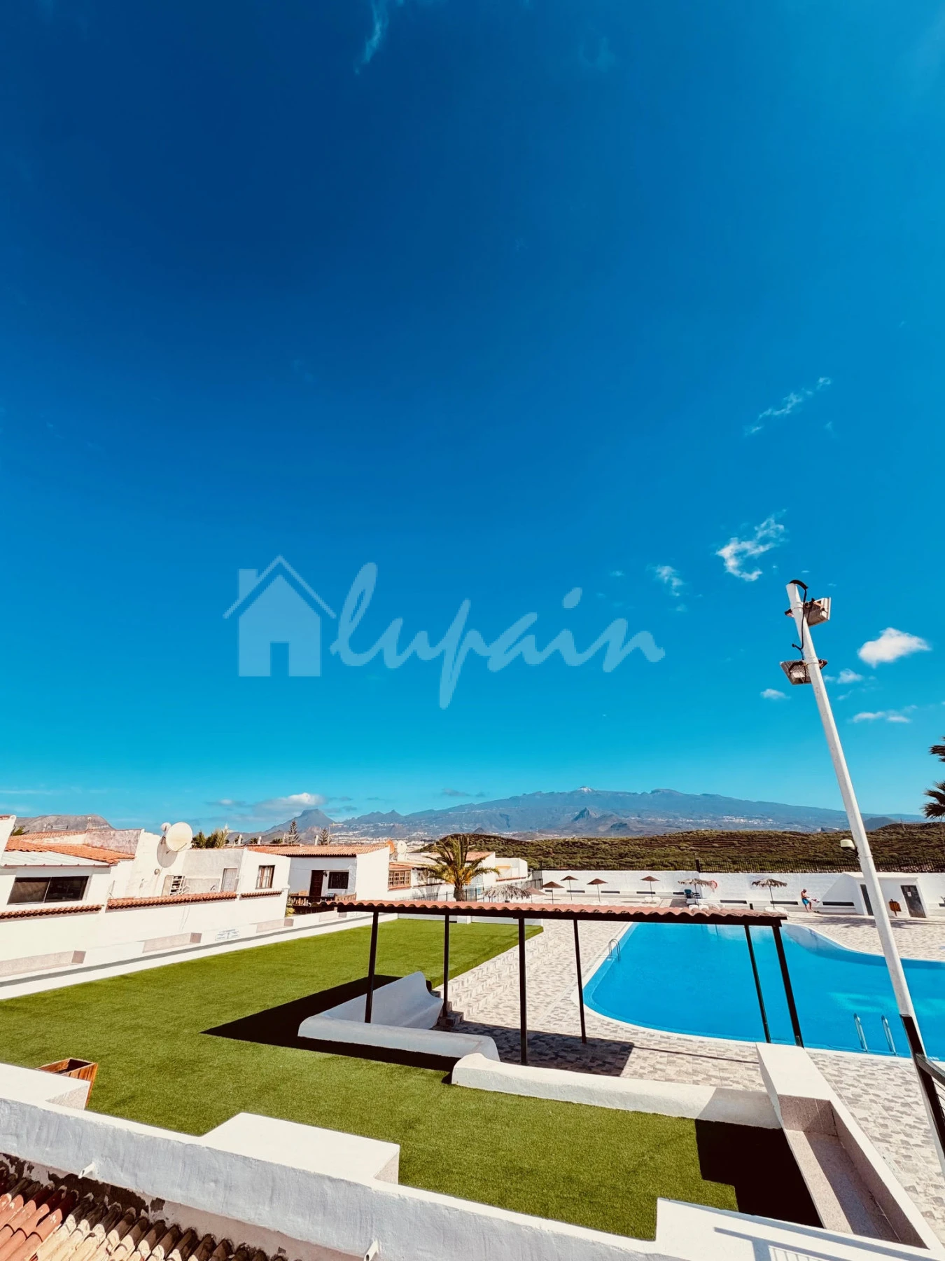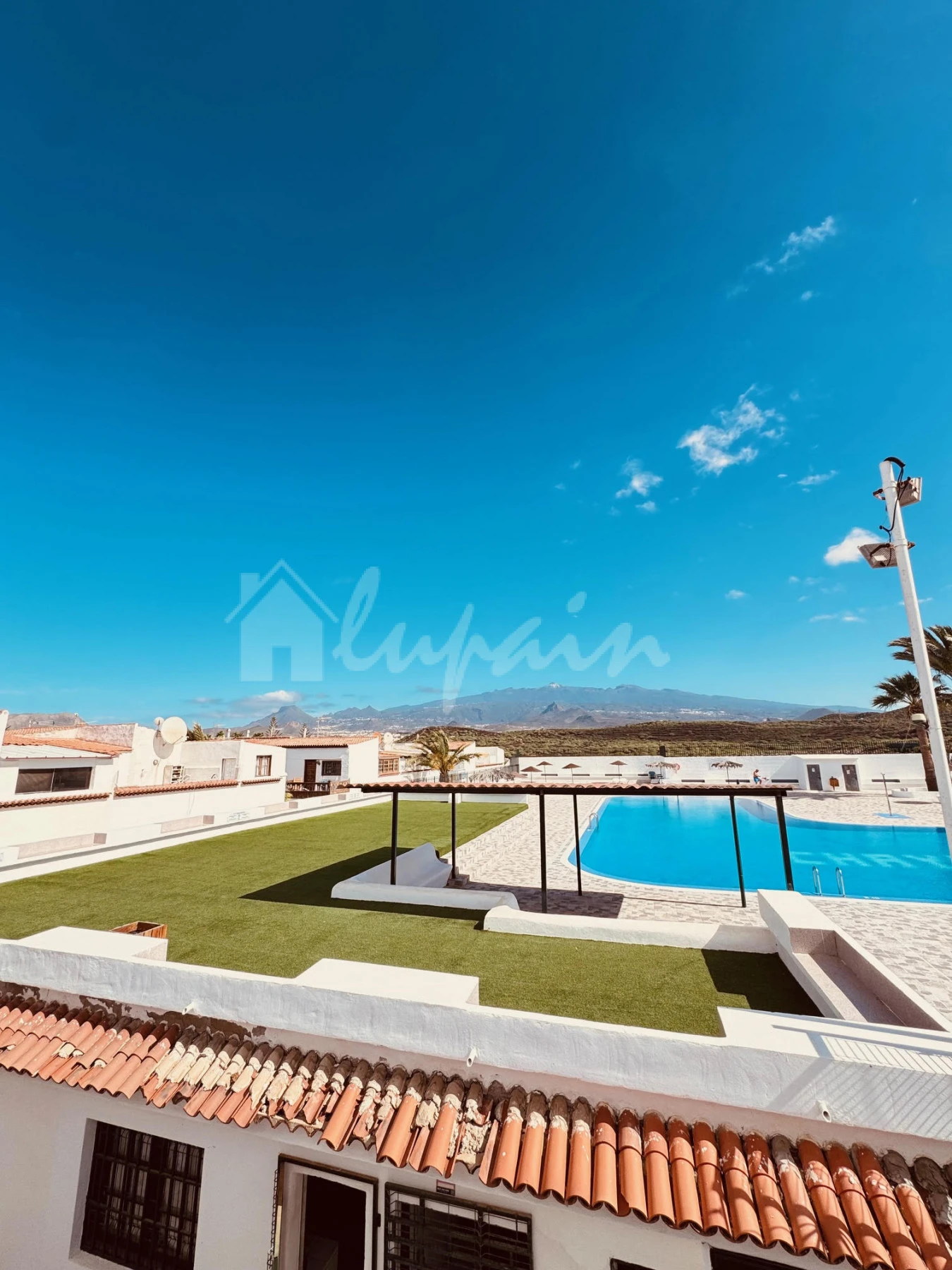 The bungalow benefits from two private terraces, providing pleasant views of the mountains and the communal pool—ideal for relaxing or entertaining.
