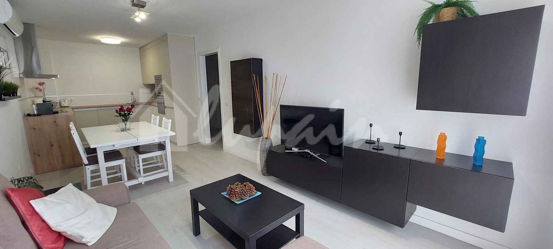 The property features a bright and spacious lounge and dining area, a fully fitted and equipped American-style kitchen, and well-proportioned bedrooms with fitted wardrobes. A modern bathroom and a private terrace provide additional comfort and outdoor space.