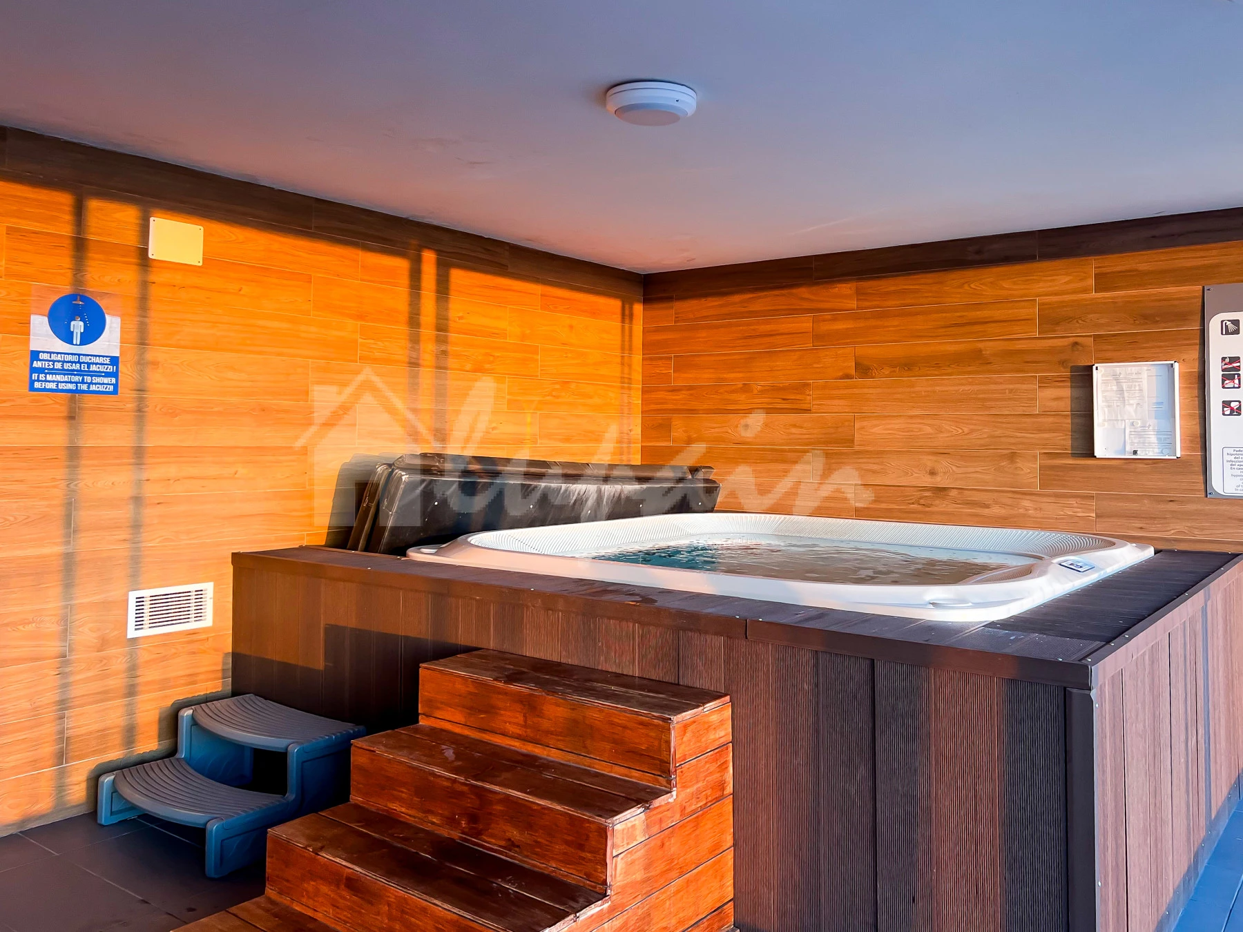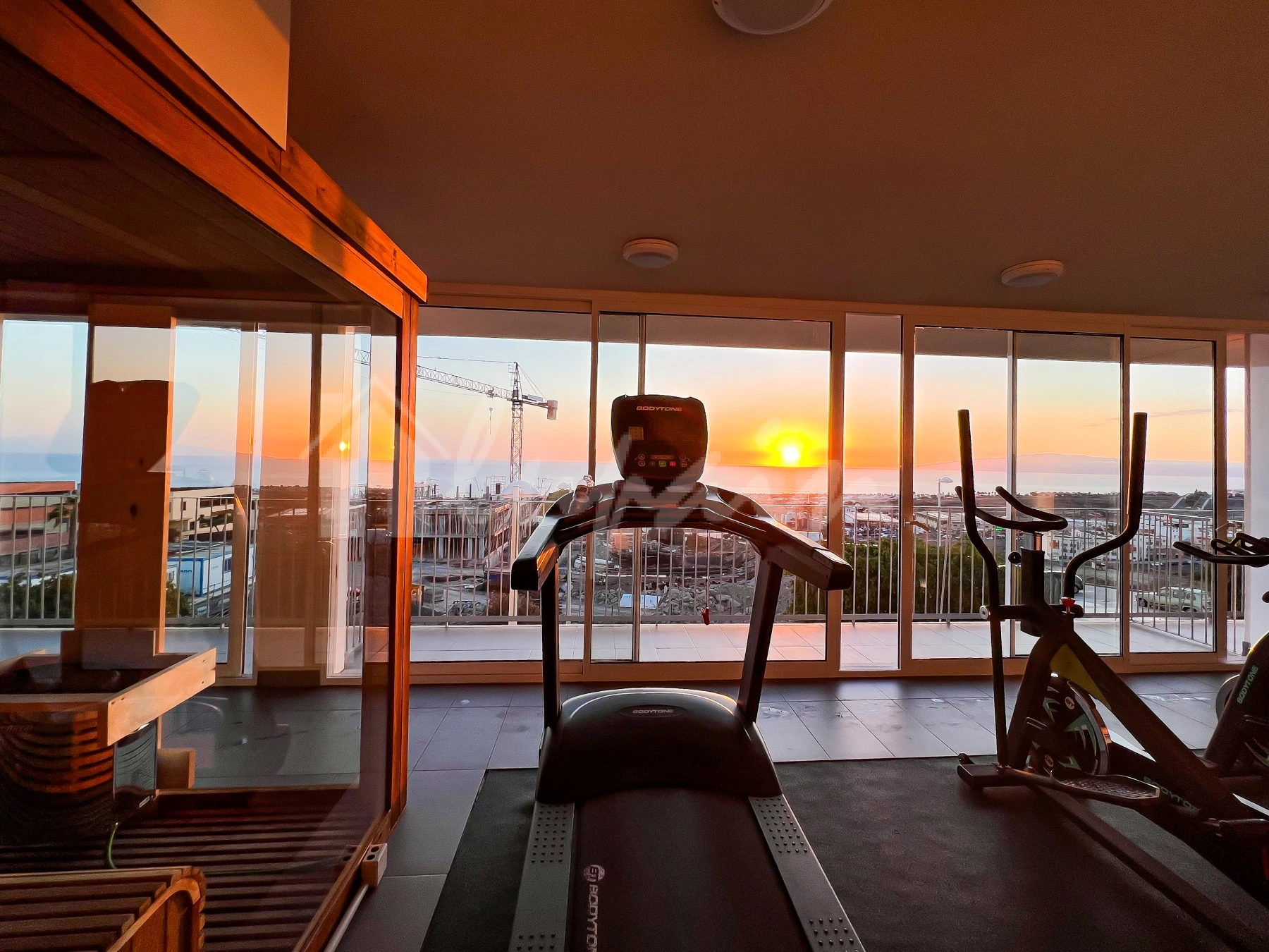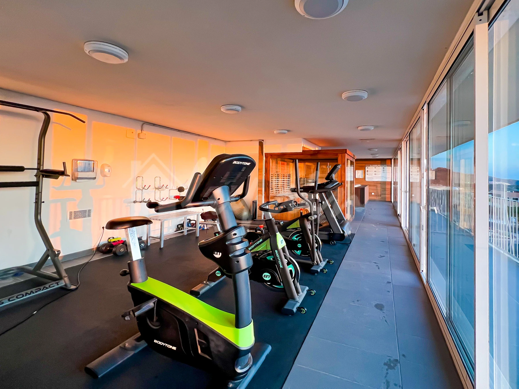 Additional features include air conditioning throughout and a private parking space included in the sale. The well-maintained residential complex offers exceptional amenities, including a communal swimming pool, gym, sauna, and Jacuzzi. Ideally situated close to all local amenities, this apartment combines comfort, convenience, and resort-style living.