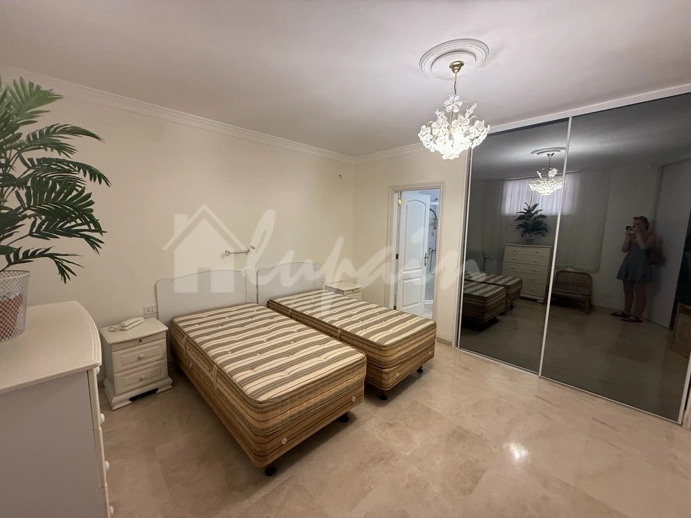 This delightful apartment in Falcon Manor offers comfortable and stylish living in a prime San Eugenio location. The property features two well-appointed bedrooms with built-in wardrobes and two modern bathrooms. The fully fitted American-style kitchen seamlessly connects to a spacious lounge and dining area, which opens via patio doors onto a terrace boasting beautiful sea views.