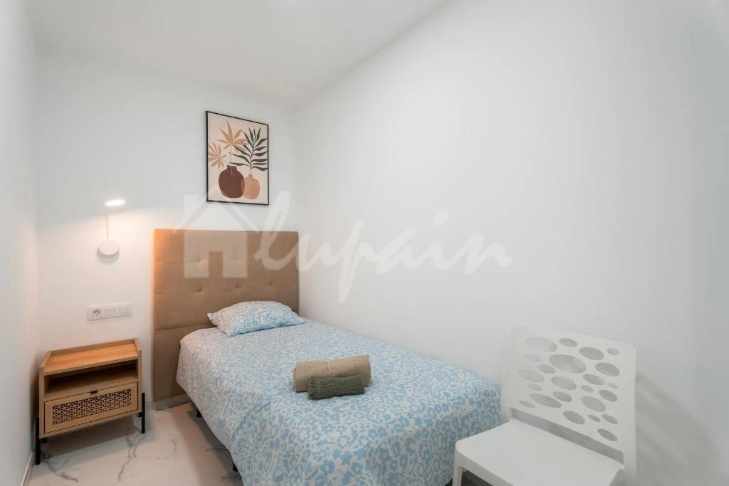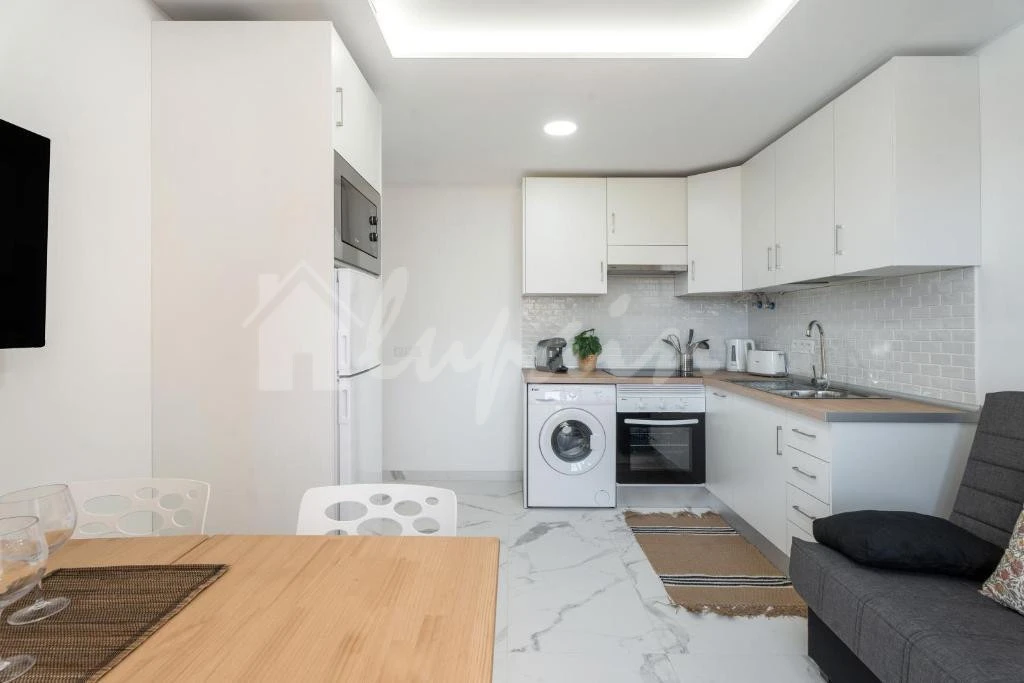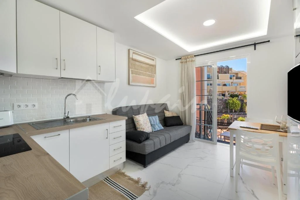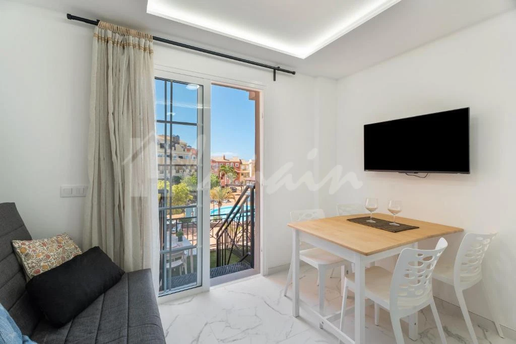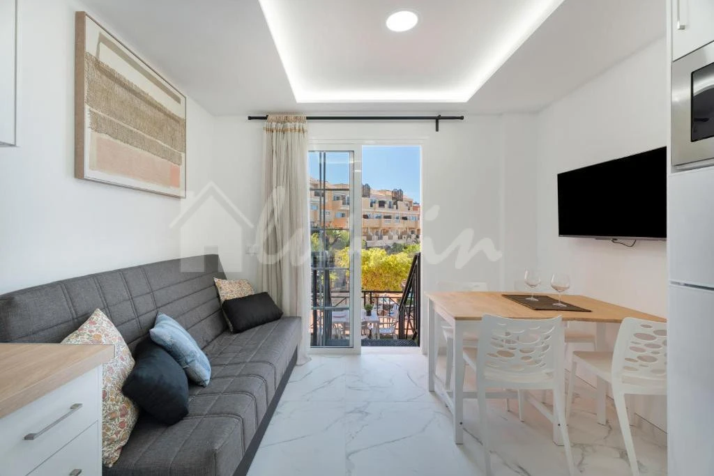 A beautifully refurbished and spacious apartment located in the sought-after Granada Park complex in Los Cristianos. This property features two well-appointed bedrooms with fitted wardrobes and a modern bathroom. The open-plan American-style kitchen comes fully fitted and equipped, seamlessly flowing into the bright lounge and dining area. Patio doors open onto a private terrace, offering delightful views of the pool, gardens, and the surrounding complex.