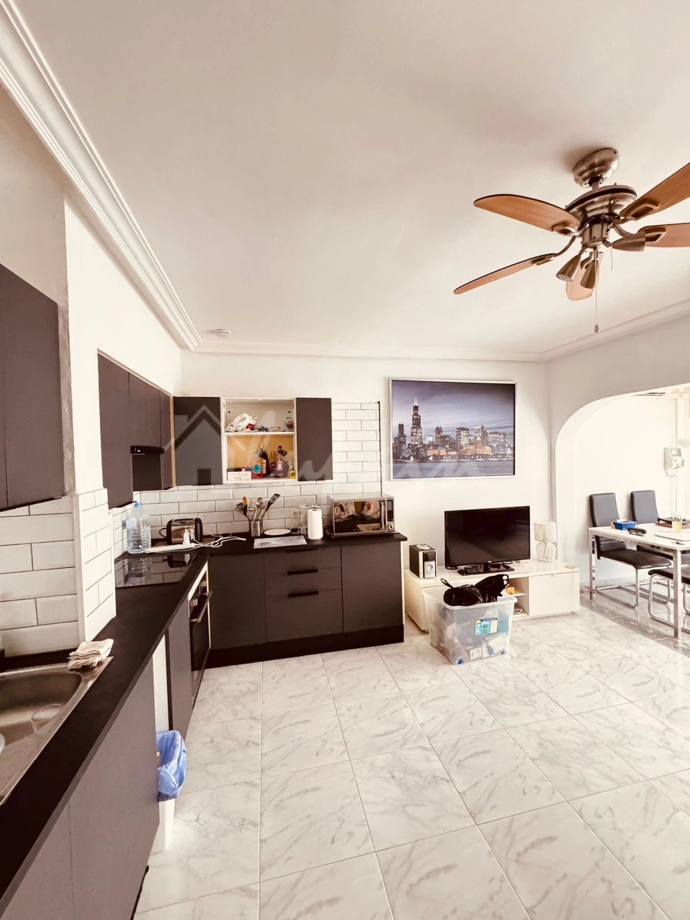 The property features a fully fitted and equipped American-style kitchen, seamlessly flowing into a bright lounge and dining area, creating a comfortable and functional living. This bungalow is also fully AC.