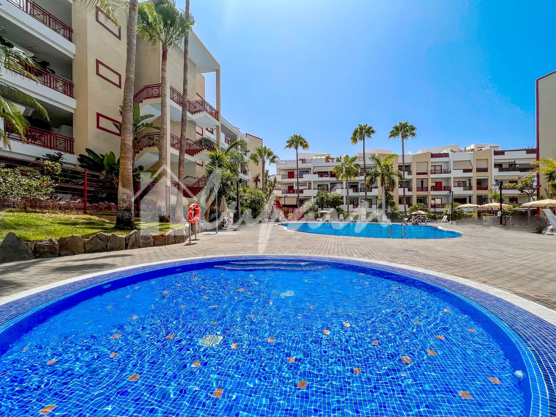 Additional benefits include a designated parking space and access to a lovely communal pool surrounded by ample sunbathing areas.