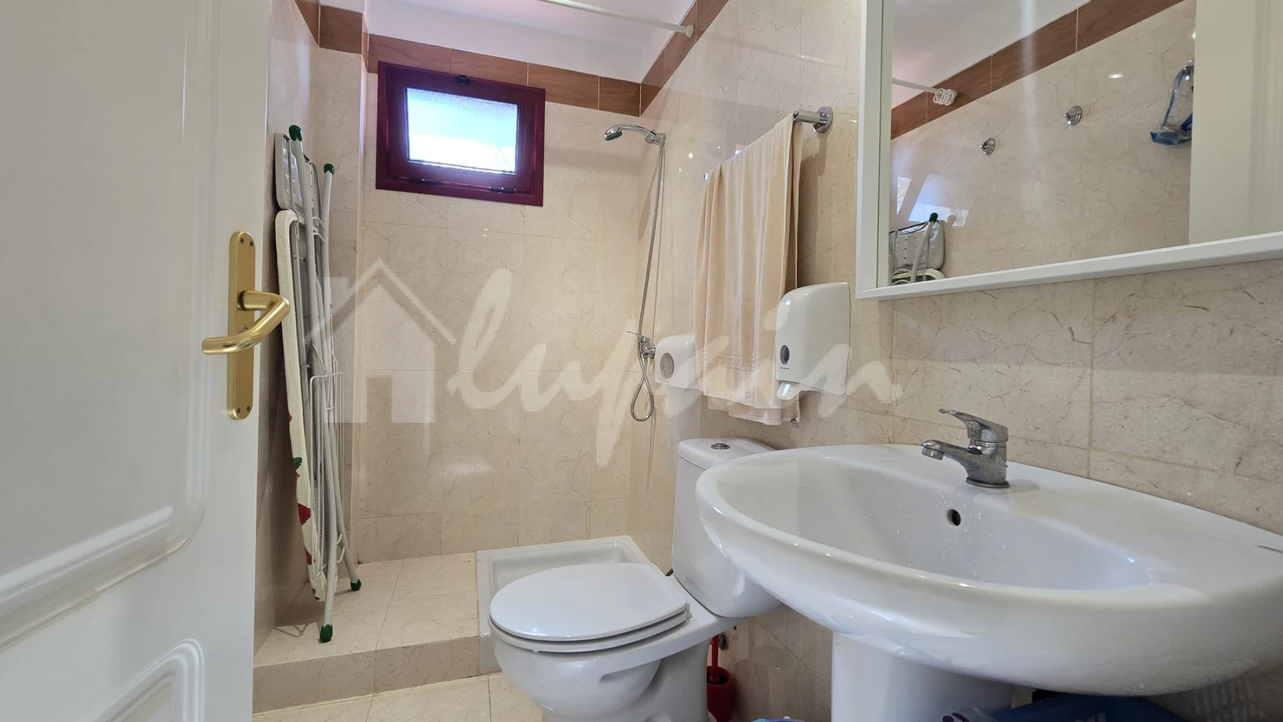 The fully fitted, independent kitchen seamlessly connects to the open-plan lounge and dining area, which opens onto a private terrace—perfect for relaxing or entertaining. The upper-level terrace boasts beautiful sea views, creating an idyllic outdoor space. There is also a third room that could be an office or 3rd bedroom.