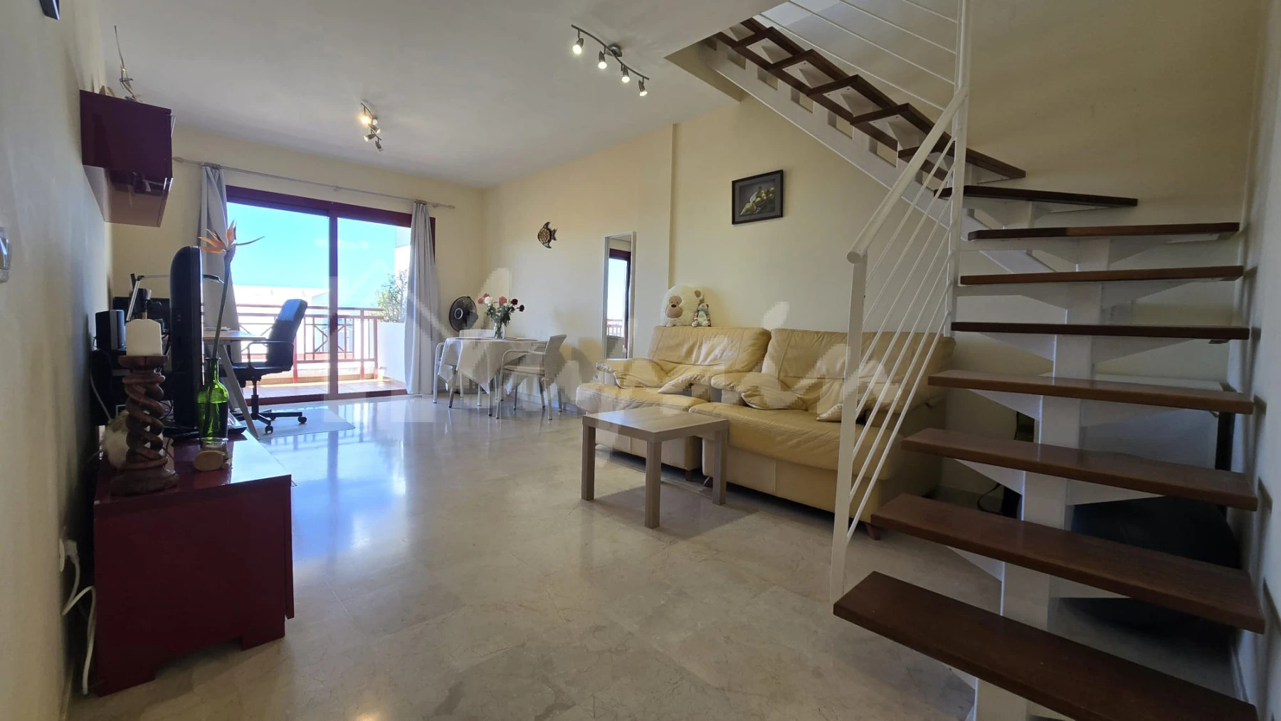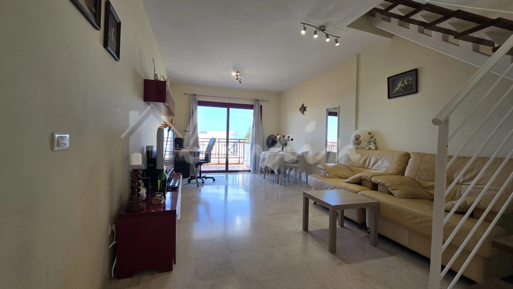 This exquisite duplex penthouse is nestled in the peaceful residential area of Palm Mar, offering a serene retreat with modern comforts. The property features two spacious bedrooms with fitted wardrobes and two bathrooms, designed for both style and functionality.