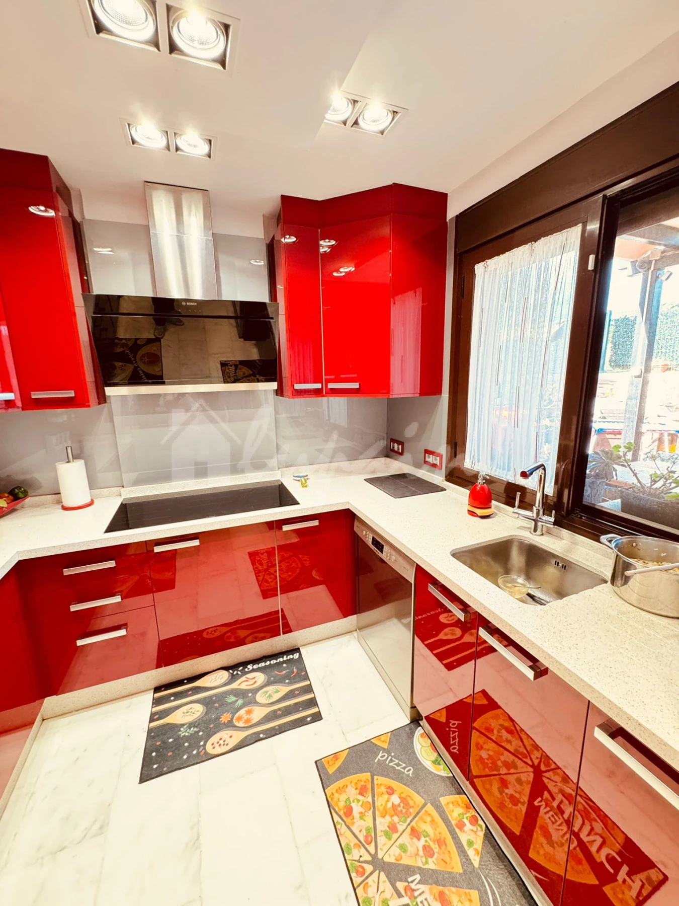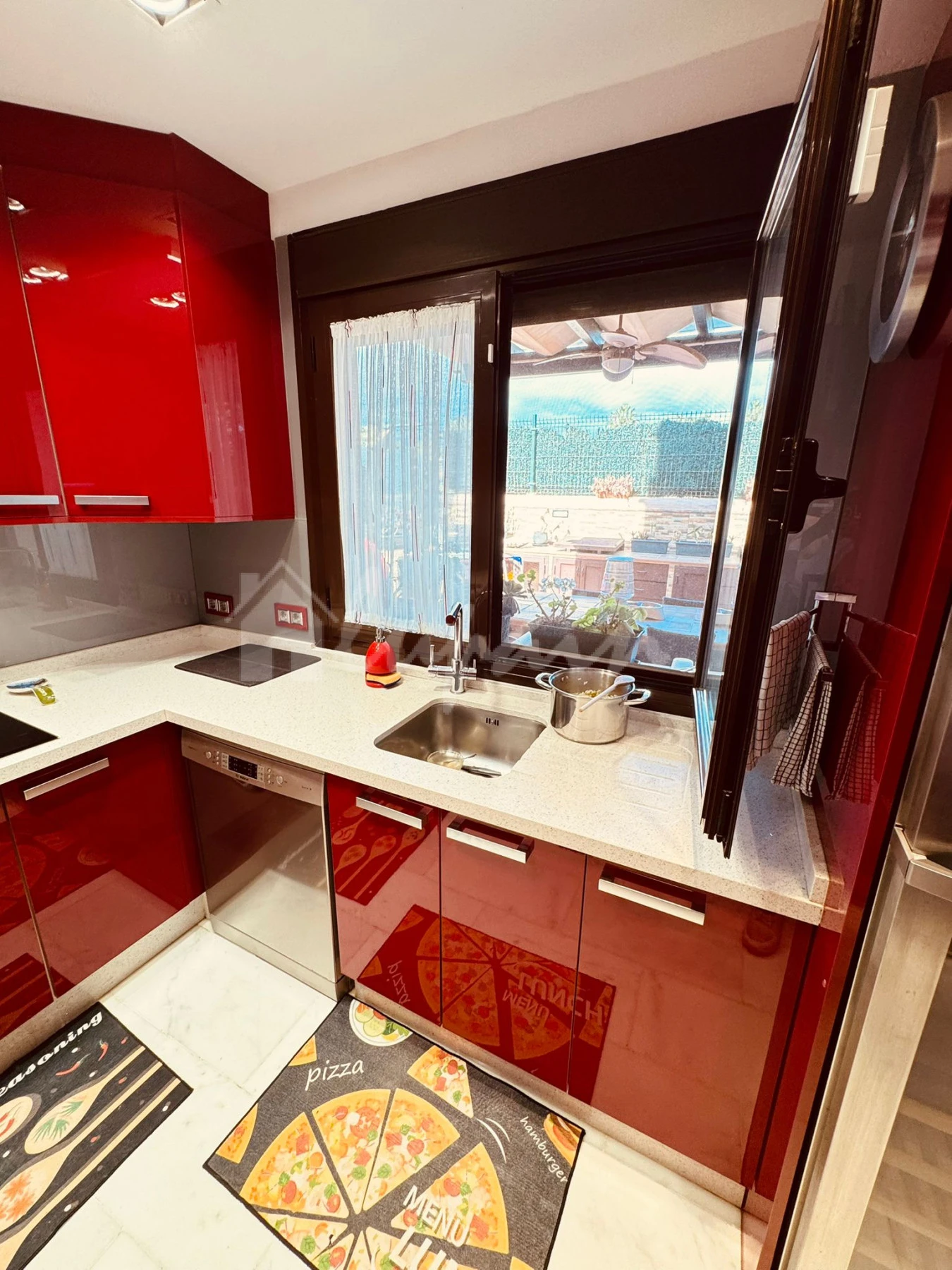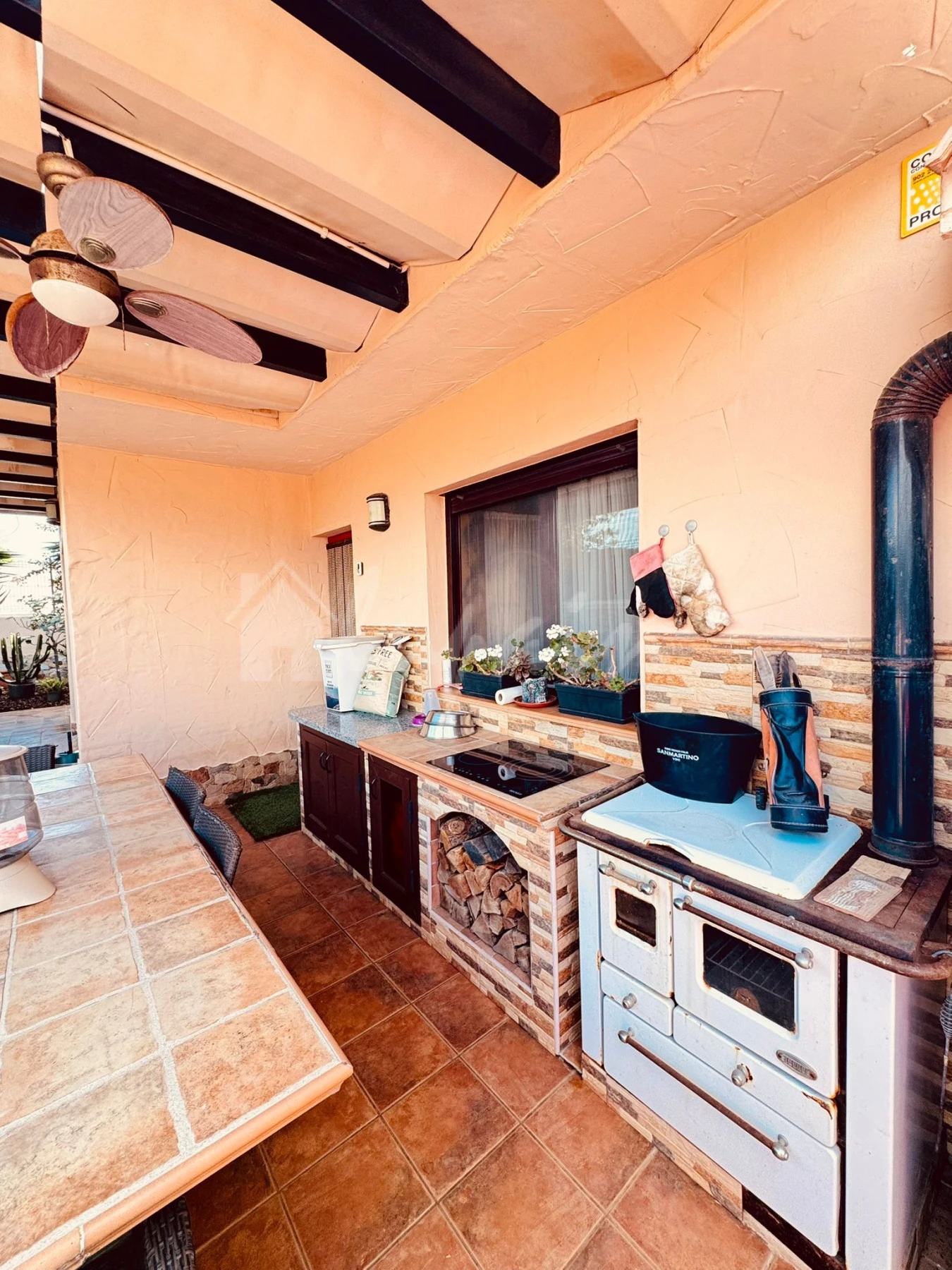 The villa comprises three to four spacious bedrooms with fitted wardrobes and two stylish bathrooms. The fully fitted, well-equipped independent kitchen complements the bright and comfortable lounge and dining area, designed for both relaxation and entertaining.