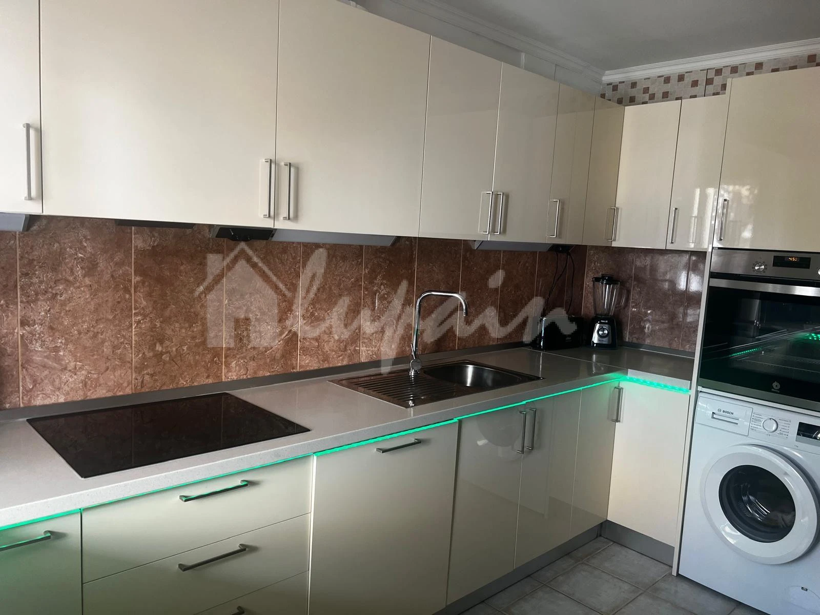 Conveniently located nearby are essential amenities including a supermarket, pharmacy, hardware store, bars, restaurants, a bus stop, tennis club, fitness center, and a scenic park equipped with bicycle paths and various sports facilities.