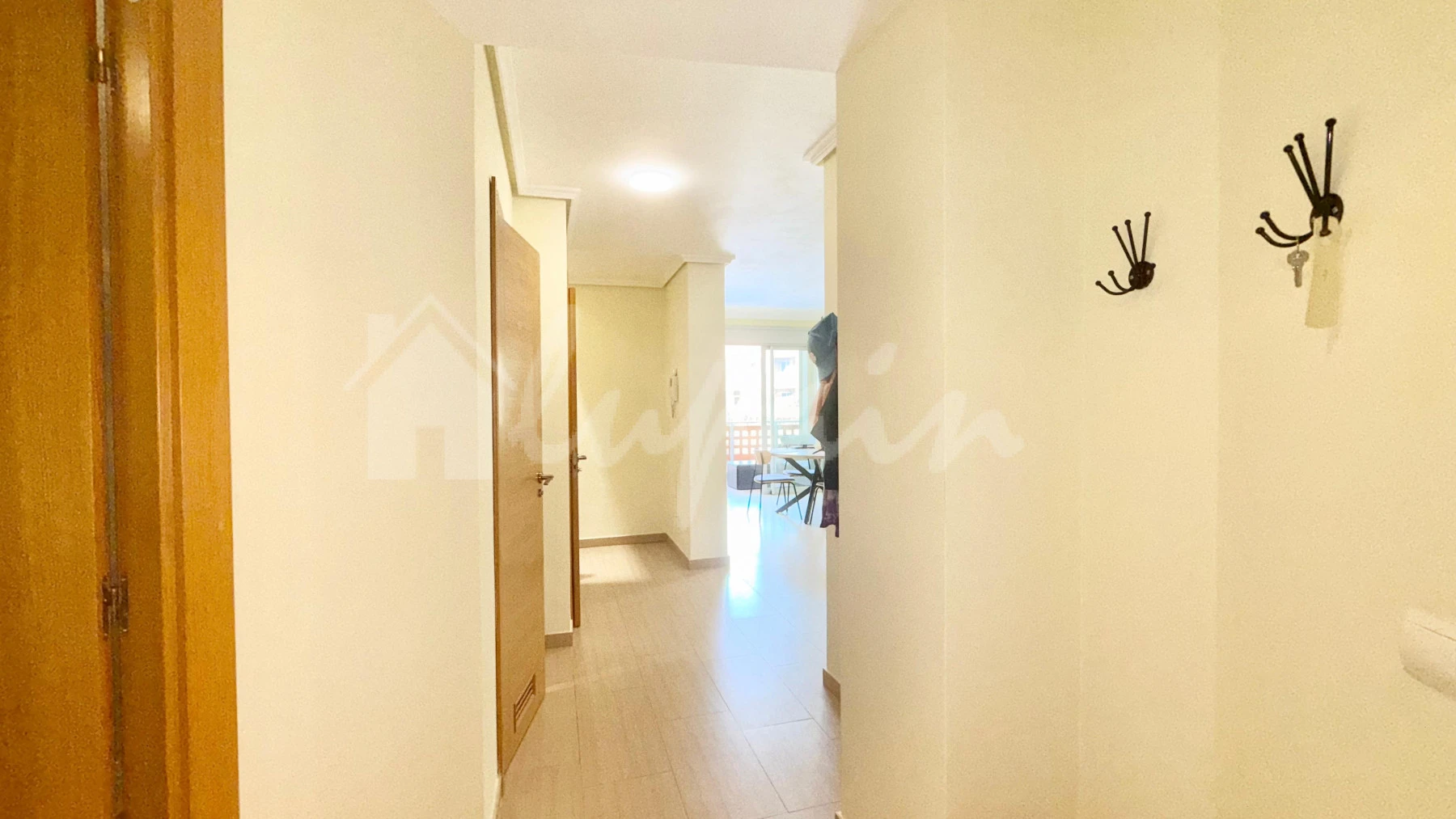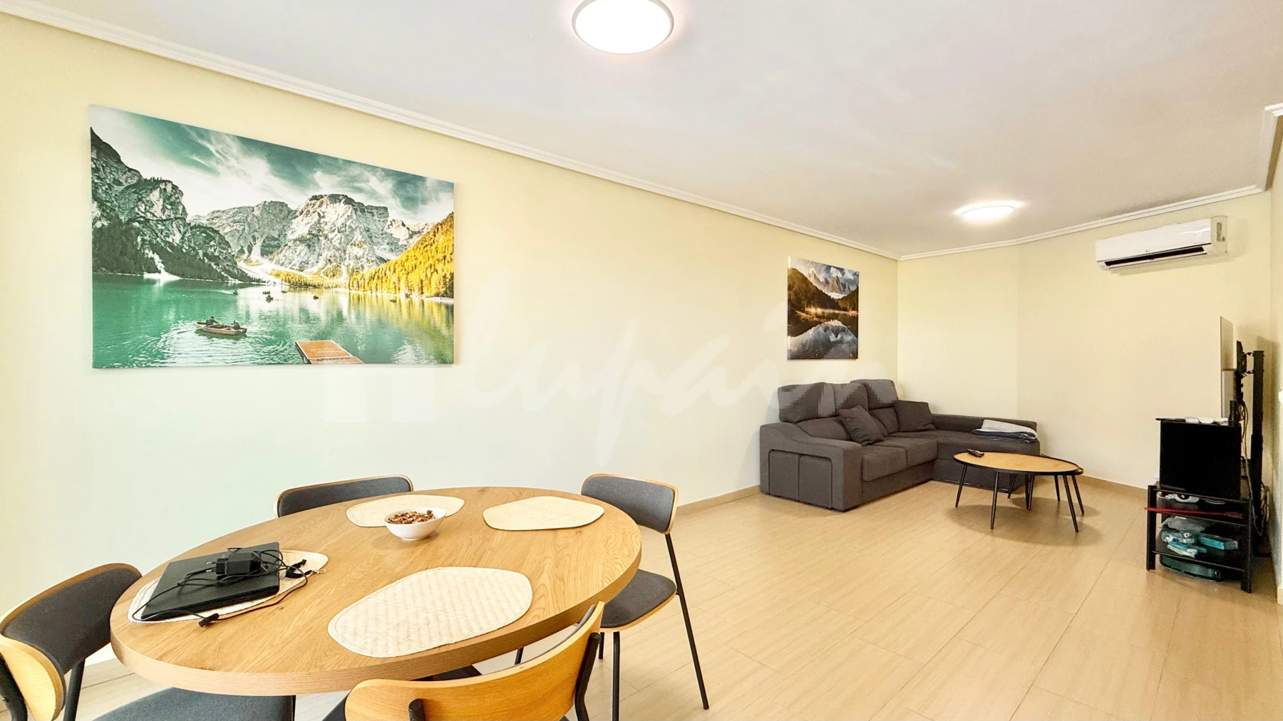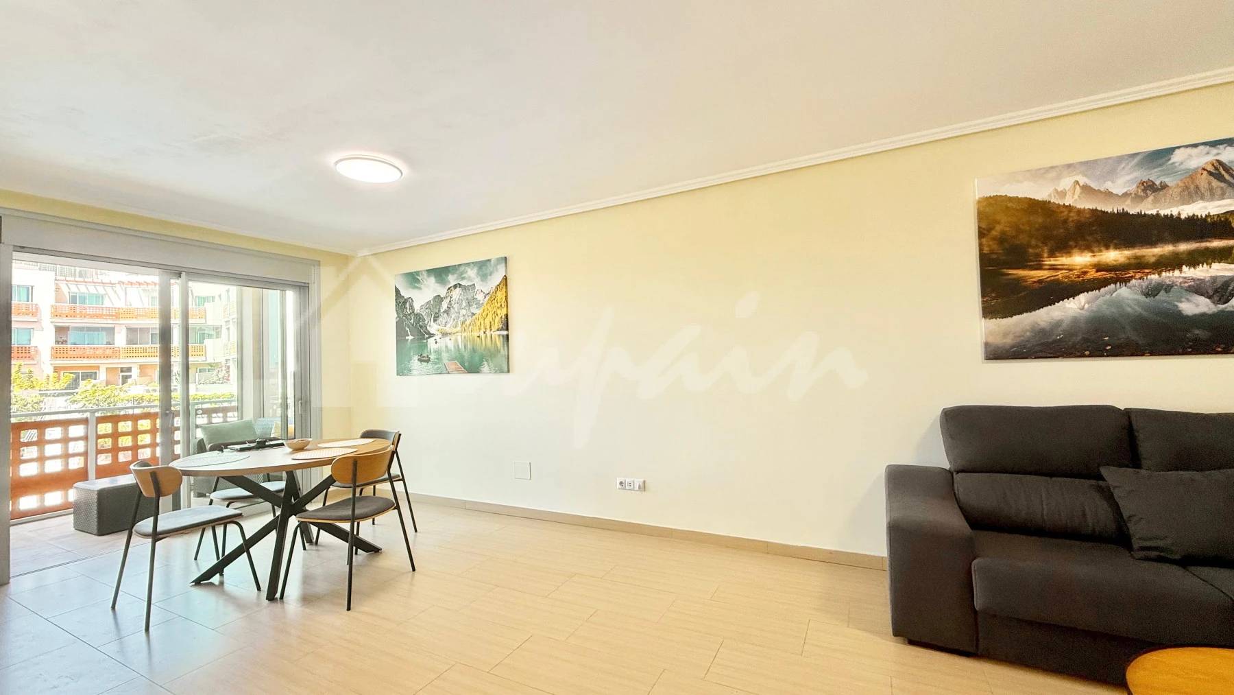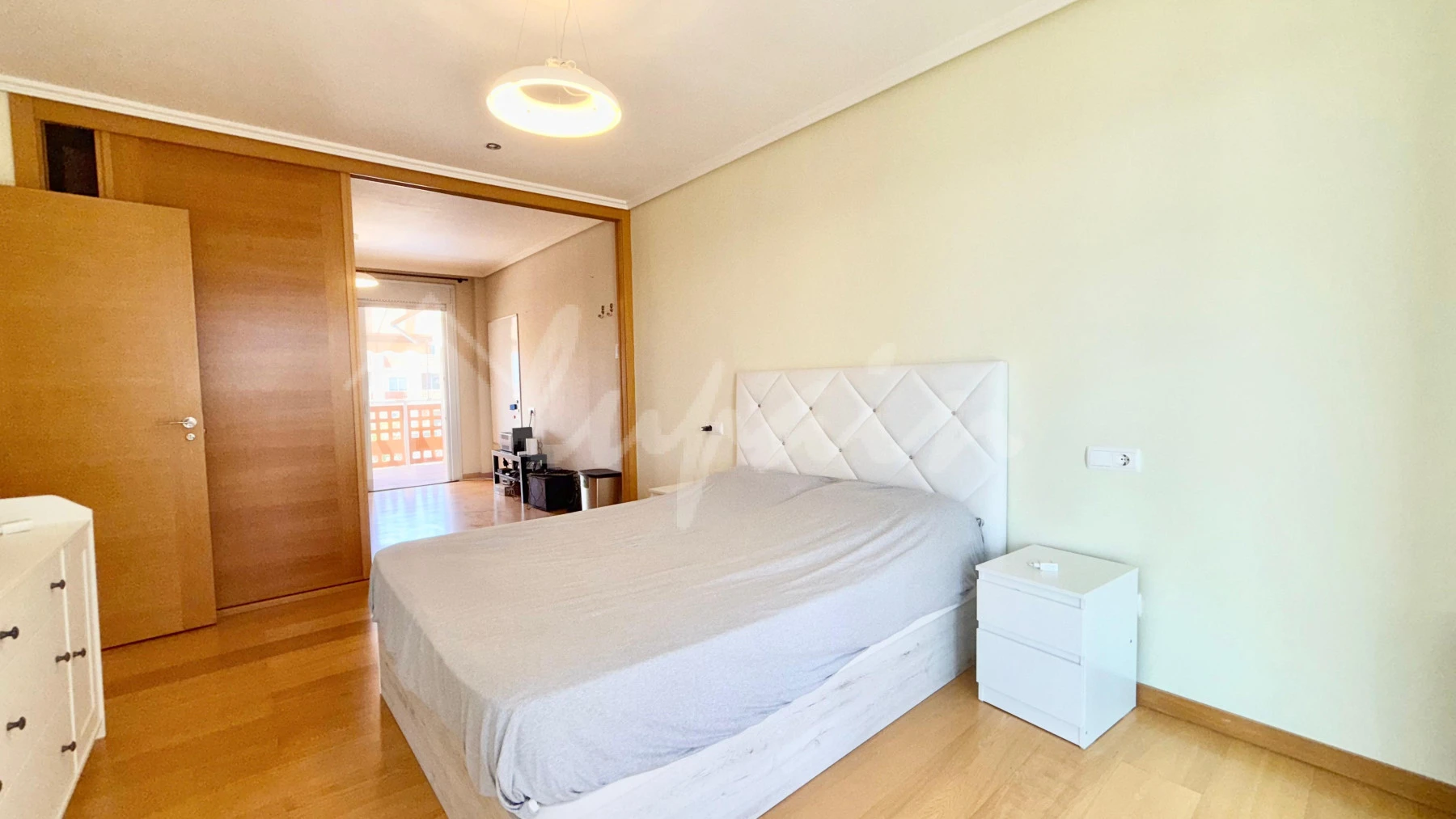 The modern American-style kitchen comes fully fitted and equipped, seamlessly connecting to a bright lounge and dining area. Large patio doors open onto one of the apartment’s three terraces, each offering pleasant views of the communal pool. A private rooftop terrace further enhances the property, boasting spectacular sea and mountain vistas.