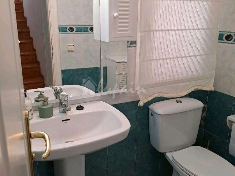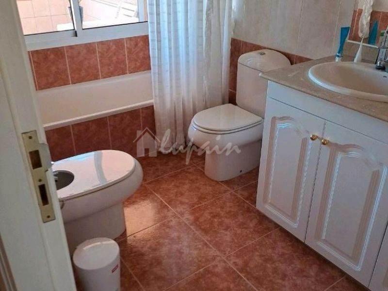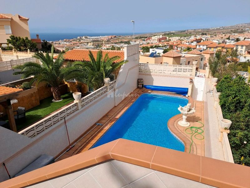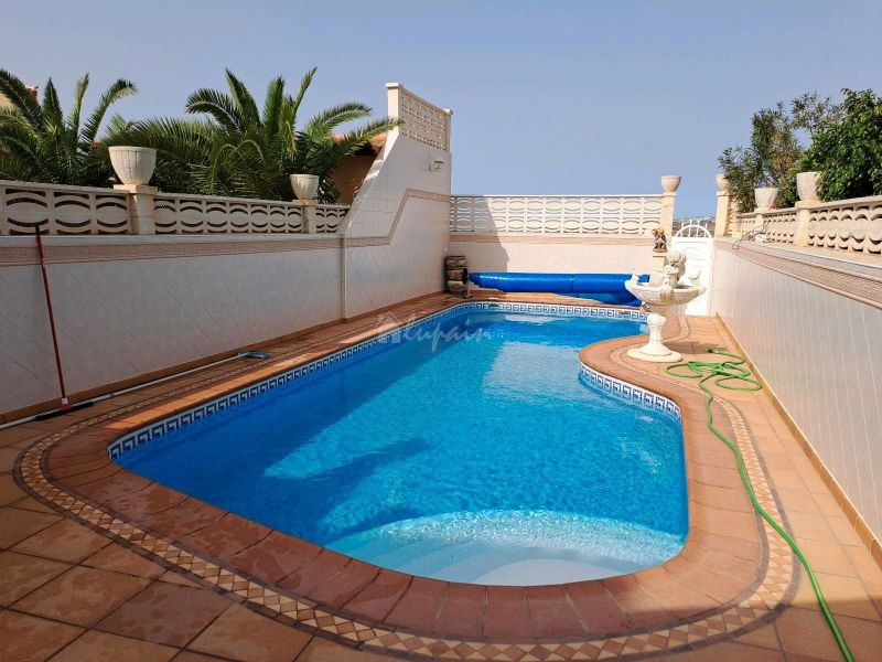 A lovely townhouse for sale in Torviscas. The property comprises of 3 bedrooms with fitted wardrobes, 3 bathrooms and W.C. There is a fully fitted and equipped independent kitchen and lounge/dining area with patio doors leading onto the terrace with sea, mountains and La Gomera. There is also a jacuzzi and an integral garage for 2 cars. The townhouse is a very short drive from the popular touristic resorts of Playa de Las Americas, his beautiful beaches, and many restaurants. Siam Mall and Siam Park are in the vicinity, and good schools available nearby too. Around 10 mins walk from the complex you have the popular shopping centre “Gran Sur” where there is a good selection of eateries, large supermarket and a cinema complex. Down this road there is the popular tourist area of Fañabe with its high class restaurants and golden sandy beaches.