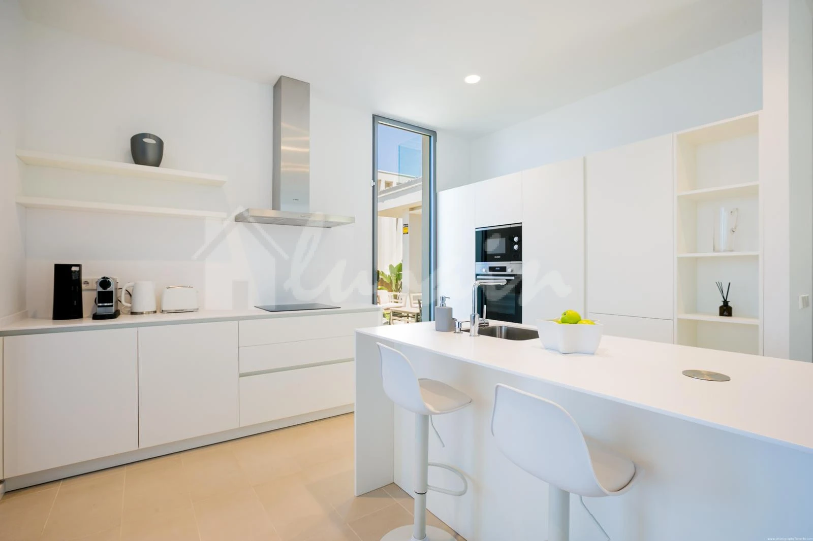 Located within the prestigious Abama Golf Resort, in the exclusive residential area of Las Atalayas, this exquisite villa seamlessly blends sophistication, comfort, and elegance in a breathtaking setting. Boasting a constructed area of 272 m² on a 395 m² plot, the property features a contemporary design with generous living spaces spread across three levels.