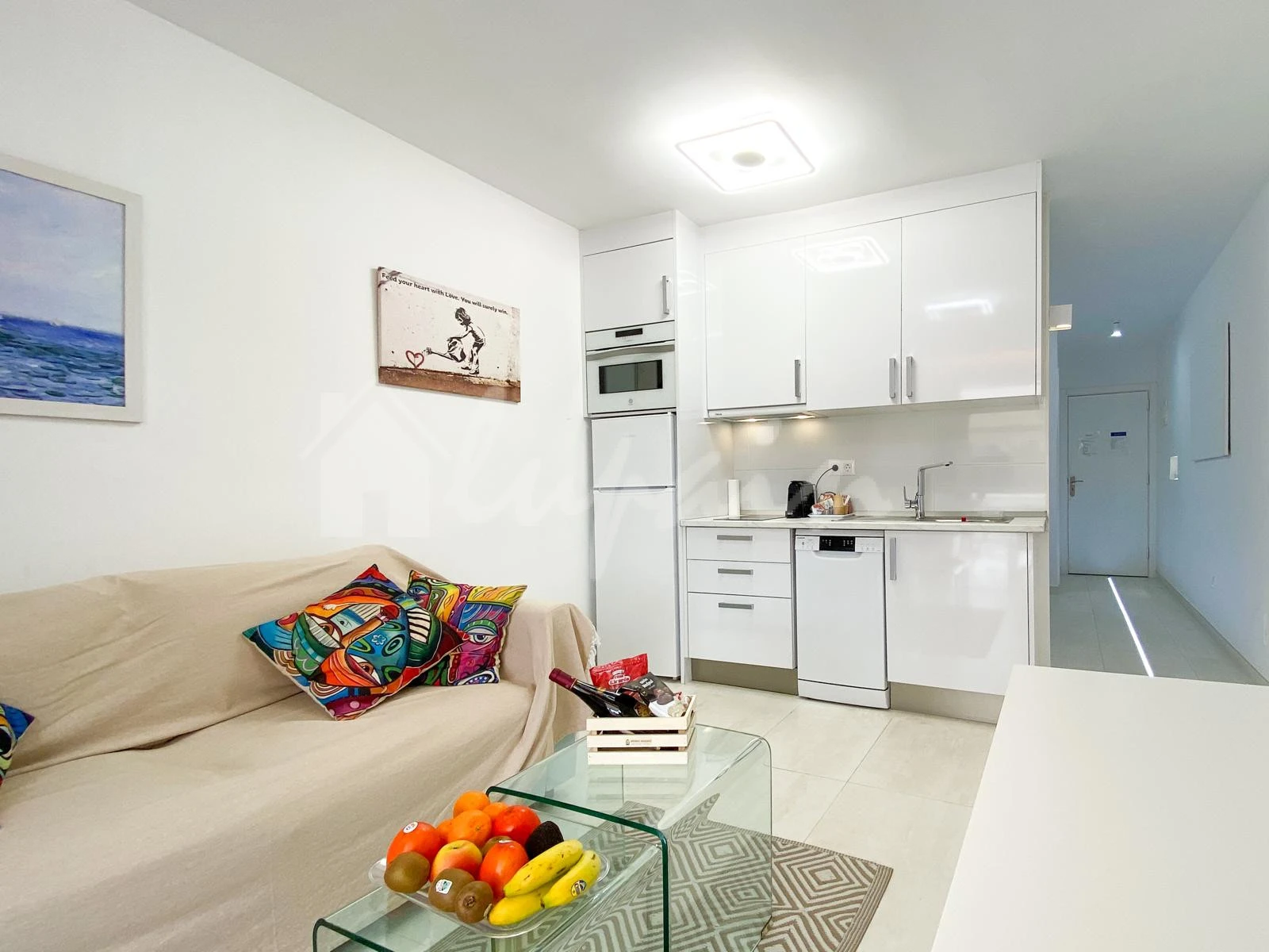 This beautifully refurbished first-floor studio is located in the highly sought-after Tenerife Royal Gardens complex in Las Americas. Boasting a bright interior of 37 m² and a spacious 13 m² terrace, the property comprises a bathroom, an open-plan American-style kitchen, and a combined lounge/bedroom area, complete with air conditioning for comfort.