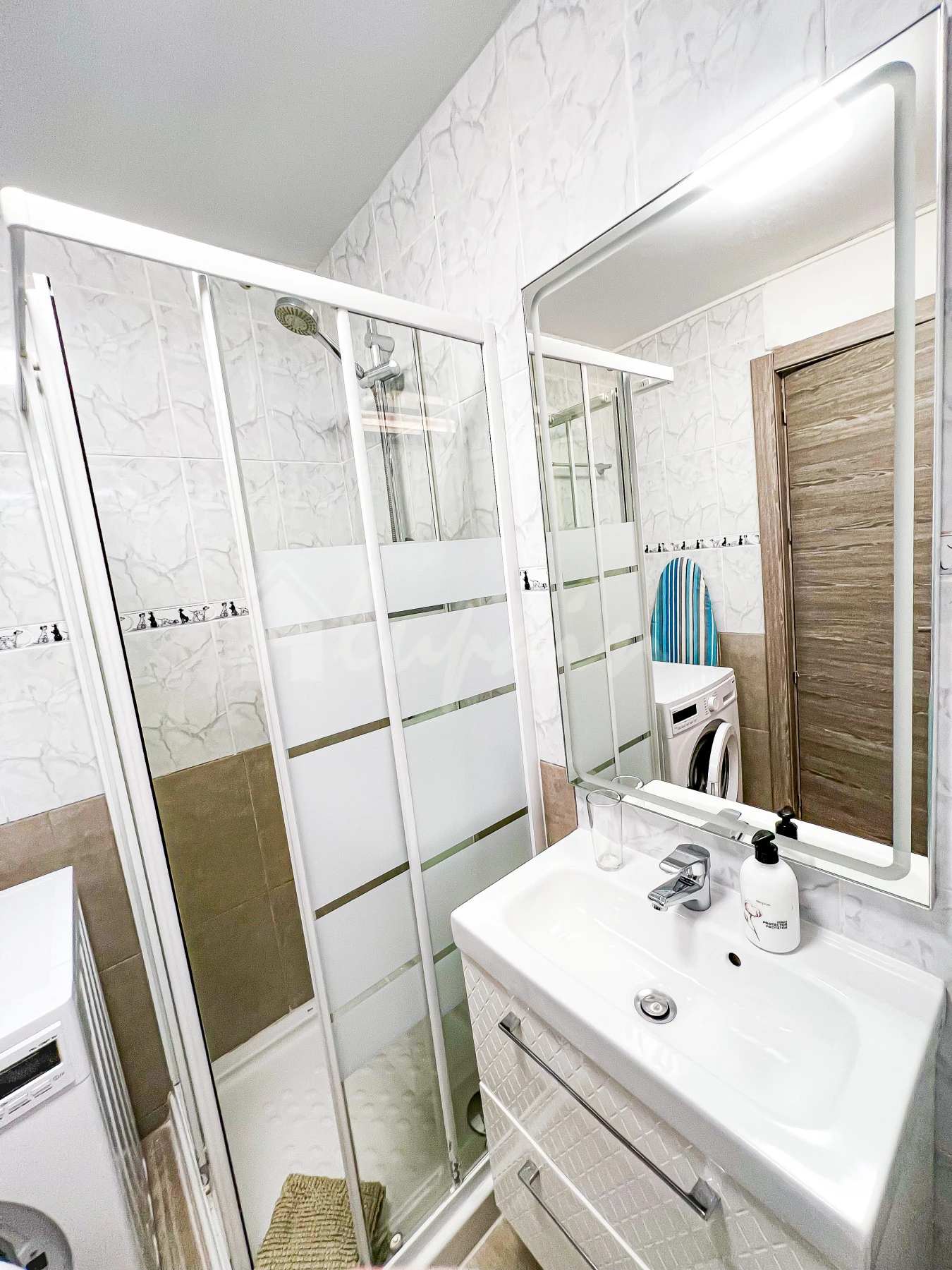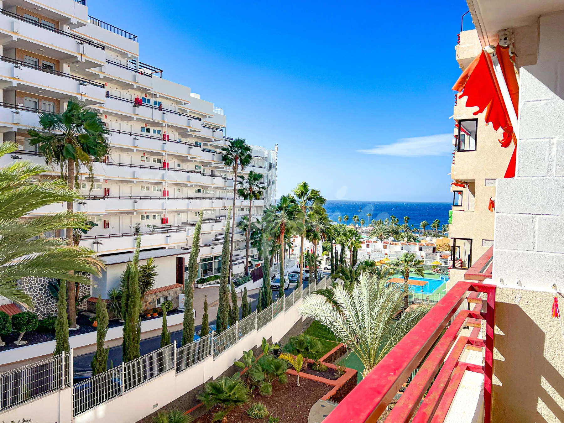 A lovely reformed studio in Olympia in Las Americas. The property comprises of fully fitted American style kitchen, bathroom and lounge/bedroom area with patio doors leading onto the terrace with complex and lateral sea views. The complex has a communal pool and parking and only a short walk to the beach and promenade where you will find shop, bars, restaurants and every other amenity you could need.